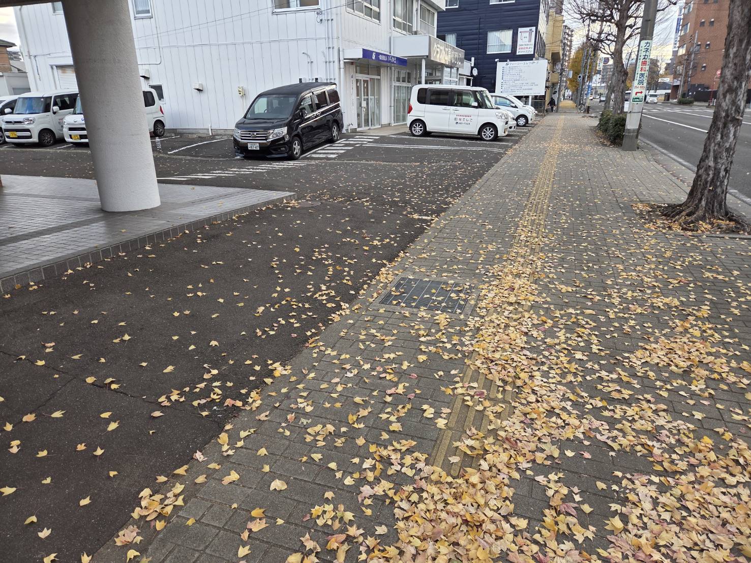 事業所の周辺には、日々たくさんの落ち葉が広がります。