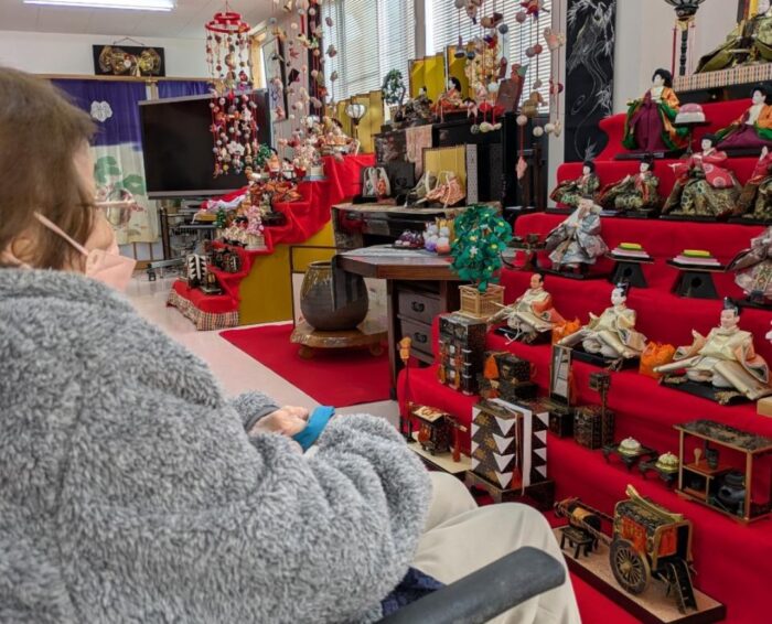 当日は、色鮮やかに飾られたお雛様をゆっくりとご覧になり、季節の行事を楽しまれているご様子でした。普段とは少し違う外出となり、笑顔も多く見られるひとときとなりました。