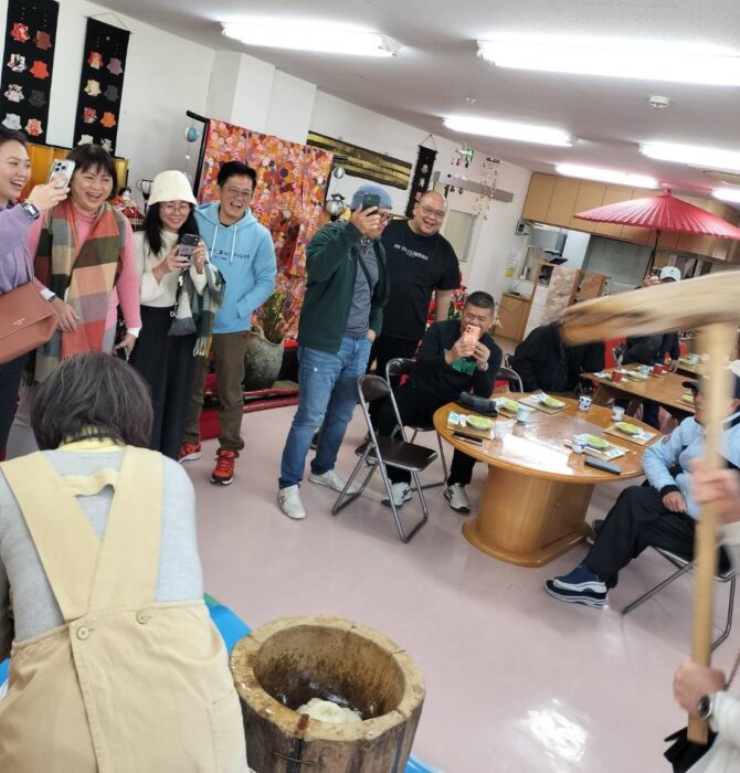 就労なでしこ ずんだ餅作り体験 2026.03.31 就労なでしこでは、宮城の郷土料理「ずんだ餅」作り体験を予約制で行っております。 先日は、マレーシアから旅行中の15名のお客様にご参加いただきました。 会場は、なでしこの館1号館2階のイベントスペースです。 臼と杵を使った餅つきは、「よいしょ!」の掛け声でスタート。次第に太鼓で音頭を取ってくださったり、自国の掛け声(のようなもの)も飛び出したりと、大変盛り上がる時間となりました。 今回はお客様のご都合により、ずんだ餅はお持ち帰り(お振る舞い)となりましたが、お雛様が飾られた期間限定の和の雰囲気の中で、日本らしいひとときを感じていただけたご様子でした。 ご興味のある方は、ぜひ就労なでしこまでお問い合わせください。準備の都合上、2~3日前までにご連絡いただけますと幸いです。 022-385-7223 担当:橋場(はしば) 仙台市若林区大和町4丁目13-27(工房なでしこ1階) 就労継続支援事業所なでしこのページ 就労継続支援事業所なでしこのブログ Twitter Instagram Post Share Hatena Pocket RSS 就労なでしこコメント: 0 ピアノの音色に包まれる、やさしいひととき